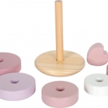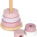 Zoznámte sa s kúzelnou drevenou skladacou vežou, ktorá prináša nielen vzdelanie, ale aj zábavu pre vaše dieťa. Táto hračka je ideálna pre rozvoj jemnej motoriky, sústredenia a vnímania veľkostí. Detská veža obsahuje rôzne pastelové krúžky, ktoré navlečiete na pohyblivú centrálnu tyč, zakončenú srdcom.