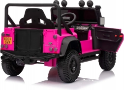 Moderné detské auto v štýle LAND ROVER Defender 110 SVX Concept nadchne prepracovanými detailmi, robustnou konštrukciou a komfortnou jazdou. Dva silné motory 2x100 W a batéria 24 V 7 Ah zabezpečia plynulý rozjazd, dve rýchlosti a ľahké zdolávanie nerovností. Mäkké penové EVA kolesá a predné aj zadné odpruženie zvyšujú pohodlie a trakciu v teréne.