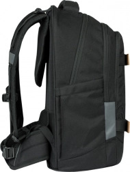 Batoh má trojkomorový organizér s vreckami, vrátane špeciálneho vrecka na notebook, a praktické dvojcestné zipsy YKK. Štýlový dizajn dopĺňa odnímateľný bedrový pás a spevnená rúčka pre nosnosť až 8 kg. V oblasti ramenných popruhov je jemná sieťovina pre lepší komfort.