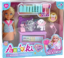 Objavte svet veterinárnej starostlivosti s mini bábikou, ktorá má len 13 cm. Oblečená v štýlovom outfite zahŕňajúcom športové topánky a blúzku s nápisom 'Pet', deti si ju zamilujú už na prvý pohľad. Realistické doplnky zahŕňajú tiež psíka a mačičku, ktorí potrebujú pomoc, a lekársku skrinku s množstvom doplnkov.