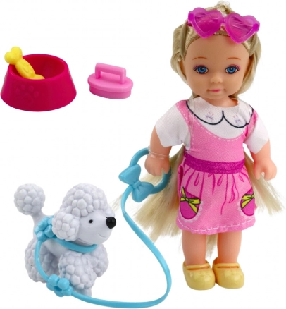 Mini bábika so psíkom je ideálnym darčekom pre deti, ktoré rady hrajú rôzne role a rozvíjajú svoju predstavivosť. Bábika má dlhé blond vlasy a sympatický vzhľad, ktorý zaručuje hodiny zábavy. Psík je vybavený modrým vodítkom, čo umožňuje deťom simulovať prechádzky, kŕmenie a hru s domácim miláčikom.