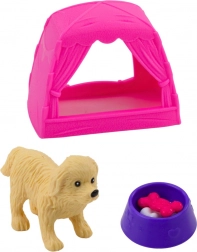 Set zahŕňa malého psíka - verného spoločníka bábiky, ktorý potrebuje starostlivosť, kŕmenie a miesto k odpočinku. Špeciálne pre neho je pripravený ružový stan, ktorý slúži ako búda - ideálny na odpočinok, hru alebo spánok. V sade je tiež miska s kosťou a pochúťkou pre realistické hranie scénok.