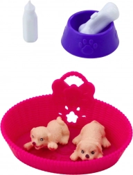 Deti sa môžu tešiť na dva malé šteniatka, ktoré môžu kŕmiť, starať sa o ne a ukladať ich do ružového pelechu s motívom labky. Vďaka flaške na kŕmenie a fialovej miske s kosťou môžu deti hrať realistické scény starostlivosti, čím rozvíjajú empatiu, kreativitu a manuálne schopnosti.