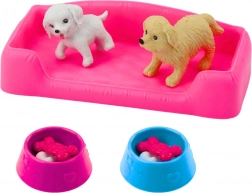Sada obsahuje skvelé príslušenstvo vrátane dvoch psíkov – bieleho a krémového, ružového pelechu a dvoch misiek s krmivom. Deti môžu starať o zvieratká, ukladať ich do pelechu a učiť sa zodpovednosti a empatii.