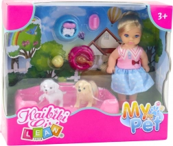 Zabavte svoje deti s touto rozkošnou sadou, ktorá prináša do hry zážitky zo starostlivosti o domáce zvieratká. Bábika s výškou 12 cm je oblečená v elegantnej dvojfarebnej sukni, doplnená červenými topánočkami a učesanými blond vlasmi do hladkého drdolu.