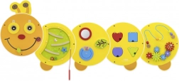 Drevená nástenná hra Húsenica Junior je skvelá voľba pre zmysluplnú zábavu detí od 18 mesiacov. Farebné prevedenie a rôzne herné prvky zaujmú na prvý pohľad, zatiaľ čo pevná nástenná konštrukcia šetrí miesto a zaisťuje bezpečné používanie.