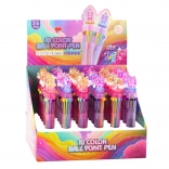 Jednorožec viacfarebné pero obsahuje automatický mechanizmus výberu farby - stačí stlačiť tlačidlo na boku a zvoliť požadovanú farbu. Korpus pera je zdobený dúhovým efektom a priehľadnou ozdobou jednorožca na vrchu, ktorá priťahuje pozornosť a robí pero obľúbeným doplnkom každého dieťaťa.