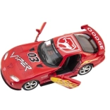 Tento realistický model športového vozidla DODGE VIPER GTS‑R prináša skvelú kombináciu kovového tela, detailného spracovania a zábavného pohonu na spätné natiahnutie. Vďaka otváracím dverám a výrazným pretekárskym prvkom pôsobí verne ako skutočný pretekársky špeciál.