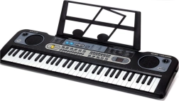 Čierny elektronický klávesový nástroj je vybavený svietiacimi klávesami a bohatou funkčnou výbavou, ktorá deťom umožňuje nielen skladanie vlastných skladieb, ale aj prehrávanie už uložených melódií. K dispozícii je 6 demo skladieb, 16 tónov, 10 rytmov, ako aj funkcie nahrávanie a prehrávanie. Pripojený mikrofón umožňuje deťom spievať k hudbe a cítiť sa ako na skutočnom pódiu.