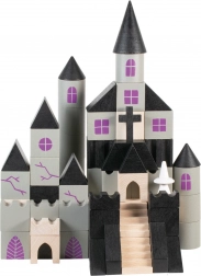 Drevená stavebnica Strašidelný hrad prináša do detského sveta kus mágie a tajomstva. Každý z 97 dielikov je vyrobený s potlačou a má rôzne tvary a veľkosti, čo umožňuje nekonečné možnosti pri stavbe hradu.