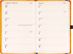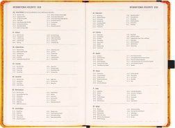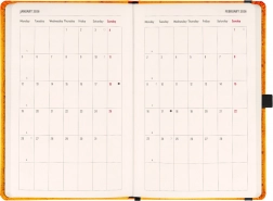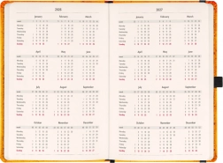 Prvá polovica obsahuje štrnásťdňový horizontálny kalendár s medzinárodnými sviatkami.