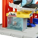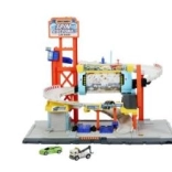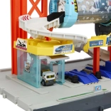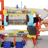 Súčasťou je servisná stanica s funkčným zdvihákom a miestom na výmenu pneumatík, rovnako ako garáž s otváracími dverami a parkovacími miestami. Set obsahuje dve kovové autíčka v mierke 1:64 – Corvette a odťahové vozidlo – pre ešte realistickejšie herné scenáre. Voda nie je potrebná, takže zábava je čistá a bez starostí.