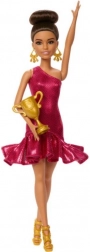 Oblečená v trblietavých, červených šatách s jedným ramienkom, ktoré perfektne ladia so zlatými náušnicami a topánkami na podpätku, je Barbie pripravená na svoje veľké víťazstvo.