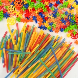 Farebné trubičky a konektory po nasvietení žiaria v tme, takže každá stavba ožije a motivuje deti k ďalšiemu tvoreniu.