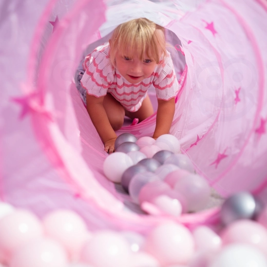 Mäkký, skladací tunel s hviezdičkami nabáda k lozeniu a plazeniu, čím rozvíja hrubú motoriku a koordináciu. Ľahká konštrukcia je bezpečná a vhodná do interiéru aj exteriéru.