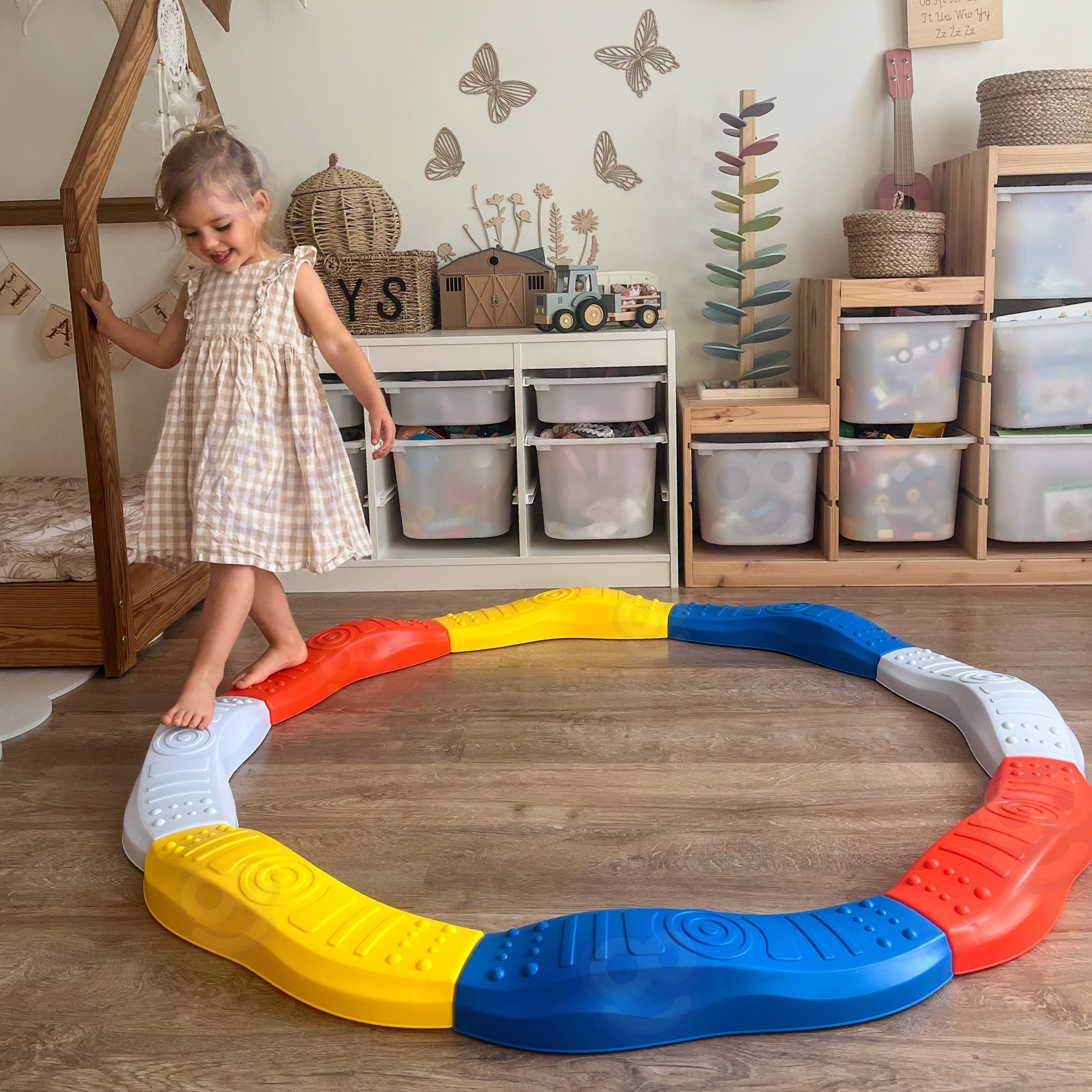 Doprajte deťom pohyb a zábavu s modulárnou senzorickou balančnou dráhou v tvare kruhu od značky Woopie. Prepojiteľné zakrivené segmenty s protišmykovým povrchom rozvíjajú rovnováhu, koordinačné schopnosti a zmyslové vnímanie chodidiel. Z 8 dielov ľahko vytvoríte kruh, vlnu aj vlastné tvary – ideálne na domáce cvičenie aj hranie na akejkoľvek rovnej ploche.