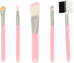 Päť rôznych štetcov s ružovými rukoväťami a kovovými lemovkami je ideálne pre efektívnu aplikáciu kozmetiky.