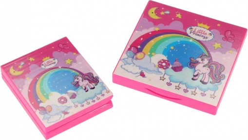Kozmetická taštička s motívom jednorožca je vyrobená z plastu a polyesteru a oslní každý detský pohľad nielen svojím vzhľadom, ale aj praktickým využitím.