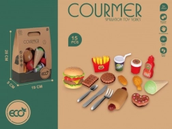 Obedový set PLEJO - Hamburger je interaktívna plastová sada, ktorá deťom umožňuje hravo vymýšľať a pripravovať lahodné hamburgery, čím podporuje ich kreativitu a jemnú motoriku.