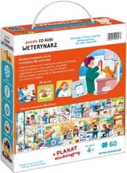 Puzzle Čo robí Veterinár je vzdelávacia sada pre zvedavé predškolákov a milovníkov zvierat. Obsahuje 60-dielne puzzle, 32 doplnkových obrázkov a vzdelávací plagát vytvorený v spolupráci s veterinárkou.
