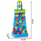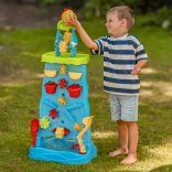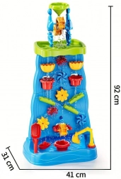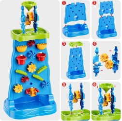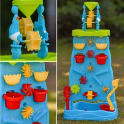 Táto farebná vodná stena s vysokou vežou a kaskádami ponúka deťom nekonečnú porciu zábavy s vodou aj pieskom. Vďaka modulárnej konštrukcii môžu meniť rozmiestnenie lievikov, žľabíkov a kolies a sledovať príčinu a následok pri prúdení vody. Obojstranné prevedenie umožňuje hrať sa z oboch strán súčasne – ideálne pre súrodencov aj kamarátov.