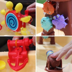 - vodný stôl, vodný kanón, výrobník bublín, vodný zjazd, kotva, sťažeň s rozhľadňou, figúrka piráta, 6 malých vodných kolies, 1 veľké vodné koleso, 3 plávajúce zvieratká, 4 kelímky na prelievanie, dáždnik