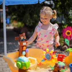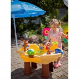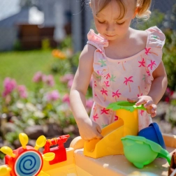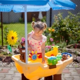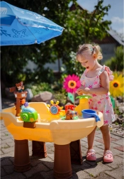 Veľký vodný stôl Woopie v dizajne pirátskej lode premení záhradu na záliv plný objavov. Deti môžu nalievať vodu, spúšťať vodné kolesá, striekať z kanóna, tvoriť bubliny a riadiť loď pomocou pirátskej veže a kormidla. Integrovaný slnečný dáždnik zaistí tieň aj v horúcich dňoch, takže hranie je pohodlné a bezpečné.