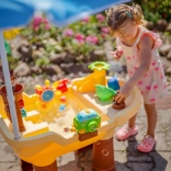 Robustná plastová konštrukcia sa ľahko montuje, rýchlo sa vyprázdňuje a čistí. Vďaka XL rozmerom je stôl ideálny pre súrodencov aj kamarátov a rozvíja jemnú motoriku, koordinačné zručnosti a predstavivosť formou zmyslovej hry s vodou.