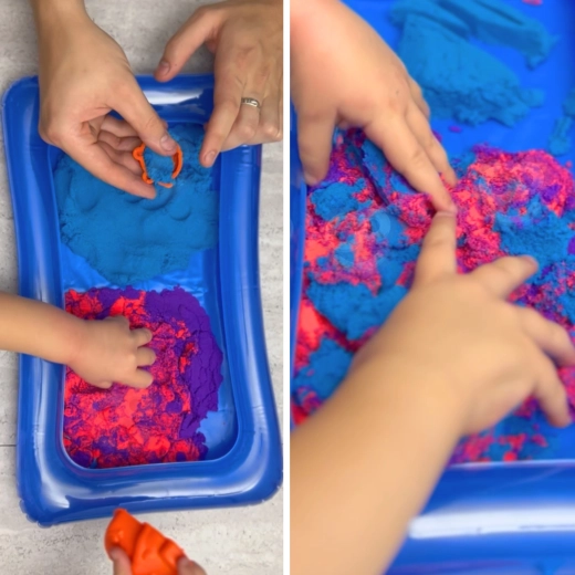 Kompaktný nafukovací tácek udrží piesok pokope, takže si deti môžu užiť tvorenie bez neporiadku na podlahe či stole.