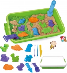 Súčasťou balenia sú rôzne zvieracie formičky, lopatky, hrable a modelovacie tyčinky, ktoré podporujú rozvoj predstavivosti, koordinácie oko–ruka a sústredenia. Vďaka uzatvárateľnému boxu je hra prenosná a uprataná – piesok aj doplnky jednoducho uložíte a vezmete kamkoľvek.