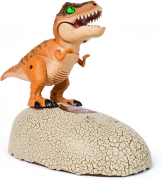 Veľké vajce s detailnou popraskanou textúrou a hniezdom vytvára autentický zážitok z liahnuťa – stačí klopať a sledovať, ako sa T‑Rex derie na svet.