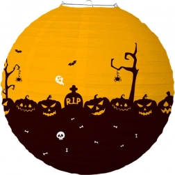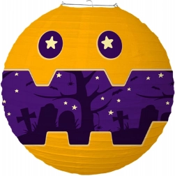 Dodajte svojej halloweenskej výzdobe tú správnu atmosféru s guľatým papierovým lampiónom s priemerom 30 cm. Vďaka ľahkej konštrukcii, jednoduchému zaveseniu a strašidelným motívom ako tekvice, duchovia, netopiere a cintoríny vytvorí behom chvíľky pôsobivé ambientné osvetlenie na párty aj do okien.