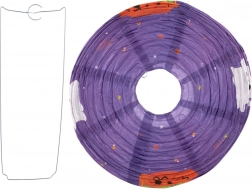 Tento dekoratívny lampión je ideálny na halloweenske večierky, výzdobu detskej izby, záhrady aj výklady. Guľatý tvar, výrazné oranžové a fialové tóny a motívy známe z Halloweenu sa postarajú o okamžitý efekt. Vďaka kovovému háčiku a vnútornému rámčeku sa ľahko skladá a zavesuje.