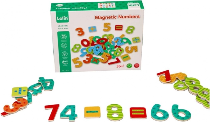 Zábavné a vzdelávacie magnetické drevené číslice pre deti od 3 rokov. Celá plocha číslic je pokrytá magnetom, čo umožňuje ľahké pripevnenie na akýkoľvek magnetický povrch.