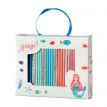 Darčeková krabička s motívom morskej víly obsahuje 25 farebných gumičiek do vlasov v jemných, dúhových odtieňoch. Niektoré sú ozdobené trblietkami a hodia sa pre malé parádivky od 3 rokov.