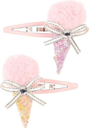 Tieto sponky do vlasov sú nielen funkčné, ale tiež krásne ozdobia každú detskú hlavičku. Každá sponka je zdobená roztomilým kornútikom so zmrzlinou, trblietavým kornútikom, mašľou s lesklým kamienkom uprostred a tylovou guľkou. Vďaka zacvakávaciemu mechanizmu zostávajú spoľahlivo na svojom mieste po celý deň.