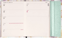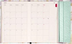 Diár tiež zahŕňa mesačné prehľady, vhodné pre plánovanie prázdnin alebo dlhších dovoleniek. Jeho magnetické uzatváranie zabezpečuje bezpečné uzavretie a ochranu vašich plánov.
