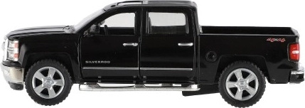 Užite si detailnú repliku ikonického pick-upu CHEVROLET Silverado 2014. Karoséria z kovu s plastovými doplnkami, precízny lak a verné proporcie potešia malých vodičov aj zberateľov. Autíčko má otváracie dvere, takže si pozriete prepracovaný interiér.