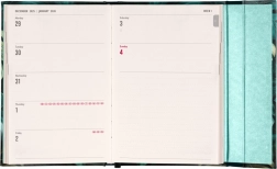 Týždenný diár s magnetickým uzatváraním a anglickými textami je skvelou voľbou pre tých, ktorí chcú mať svoje plány prehľadne pod kontrolou. Ponuka týždňa na dvoch stranách a medzinárodné sviatky poskytujú komfortné zázemie pre každodenné plánovanie.