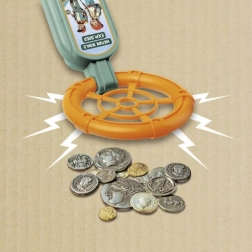 Tento ľahký a ľahko ovládateľný detektor kovov je skvelý pre prvé kroky do sveta hľadania pokladov. Zvuková a svetelná odozva okamžite upozorní na nájdené kovové predmety, takže deti rýchlo pochopia, ako detektor funguje.