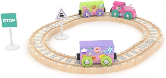 Táto drevená vláčikodráhová sada je ideálnou prvou železnicou pre najmenších. Vďaka atraktívnym farbám a dizajnu pre dievčatá deti ľahko vtiahne do hry a rozvíja ich predstavivosť. Materiály sú šetrné k prírode a bez chemikálií, takže sa môžete spoľahnúť na bezpečné hranie každý deň.