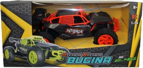 Zaži adrenalín na každej trati s touto terénnou RC buginou v mierke 1:14. Ponúka maximálnu rýchlosť až 25 km/h, diaľkové ovládanie 2,4 GHz s dosahom 30–40 m a absorpčné tlmiče na oboch nápravách pre hladkú jazdu aj v náročnom teréne.
