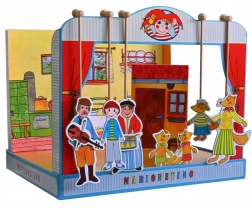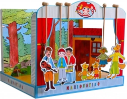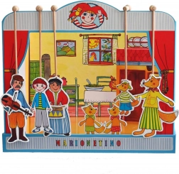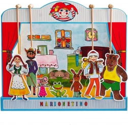 Sada je vyrobená z kvalitnej knihárskej lepenky, dreva a laminovaného kartónu, čo zaručuje jej odolnosť a dlhú životnosť. Ideálne pre menšie deti, ktoré sa len učia divadelnému umeniu, aj pre zábavu celých rodín.