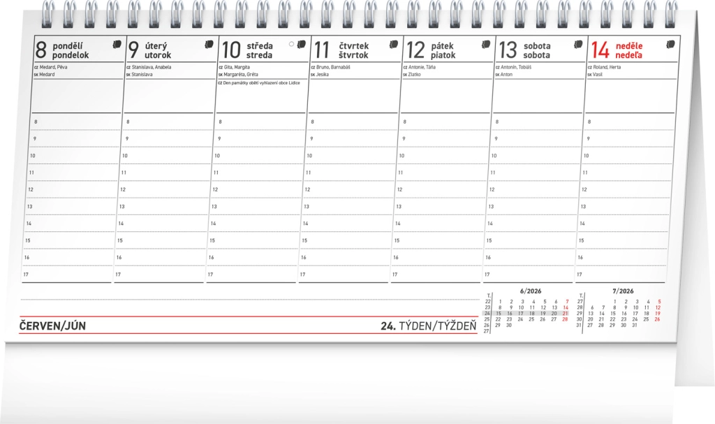 - Súčasťou kalendára sú české a slovenské mená, vrátane sviatkov a pamätných dní.