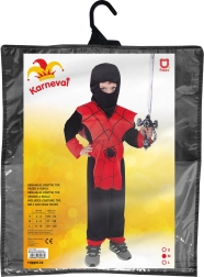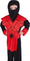 Karnevalový kostým pre mladých bojovníkov vo veku 6-8 rokov, ktorý obsahuje všetko potrebné, aby sa vaše dieťa cítilo ako skutočný NINJA. Overal, vesta, kukla, čelenka a opasok s motívom pavúka a pavučín.