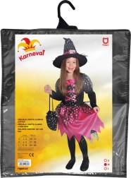 Magický karnevalový kostým pre malé čarodejnice! Čierno-ružový kostým je ideálny pre dievčatá vo veku 6-8 rokov, výška 117-128 cm. Vyznačuje sa ružovými stužkami a striebornými hviezdičkami.