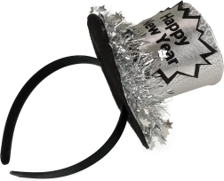 Začnite nový rok s eleganciou a gráciou vďaka čelenke s mini klobúkom „Happy New Year“, ktorá je dokonalým doplnkom pre akúkoľvek slávnostnú príležitosť.