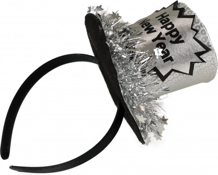 Oslávte príchod Nového roka štýlovo s týmto strieborným mini klobúkom pripevneným na pohodlnej čelenke. Tento elegantný doplnok dodá vášmu outfitu slávnostný šmrnc a zaručene upúta pozornosť na každom silvestrovskom večierku.