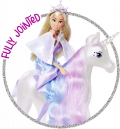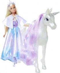Objavte svet fantázie s bábikou Steffi, ktorá je oblečená do čarovných princeznovských šiat, ideálnych pre každú rozprávku. Jej verný spoločník, jednorožec, nielenže pôsobí veľkolepo vďaka svojej svietiacej funkcii, ale tiež umožňuje tvorbu rôznych účesov vďaka svojej dlhej hrive.
