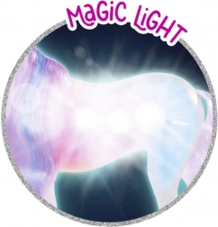 • Jednorožec s hrivou na česanie, ktorý svieti.
